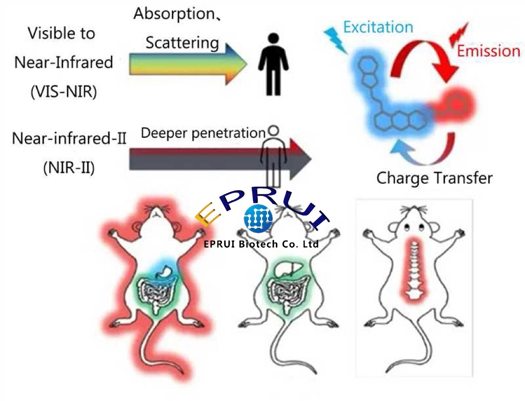 The near-infrared fluorescence properties of carbon nanotubes make them widely applicable in in vivo animal imaging. For example, Dai et al. at Stanford University injected water-soluble carbon nanotubes into the bloodstream of live mice and obtained vascular imaging information using second near-infrared fluorescence imaging. However, the large size of carbon nanotubes makes them difficult to metabolize and raises potential toxicity concerns.